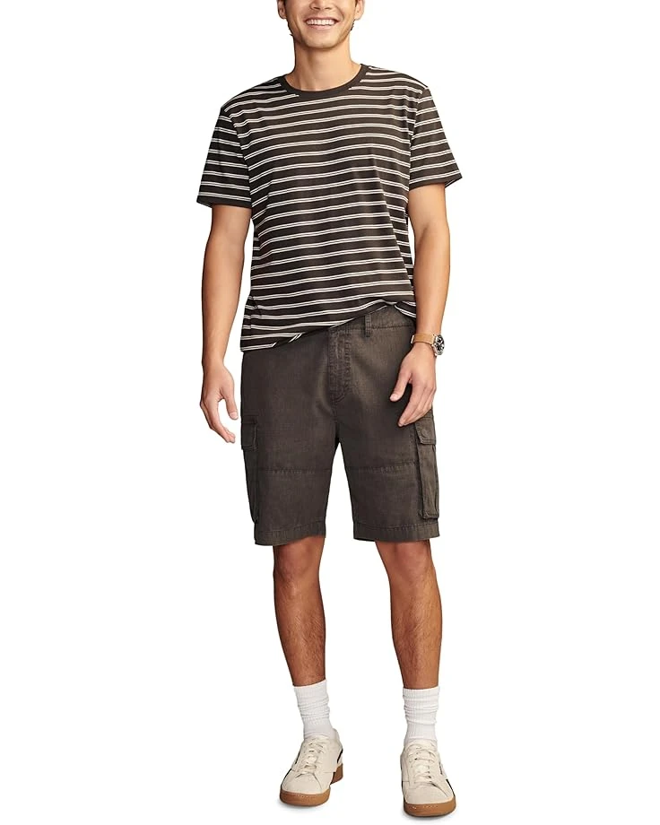 - Designed for a classic fit, the Lucky Brand® 9″ Stretch Twill Flat Front Embroidered Short features flat front with an all-over embroidered design and multiple pockets to keep your essentials close at hand. The snap closure and mid-rise waistband with belt loops adds to the funtionality.