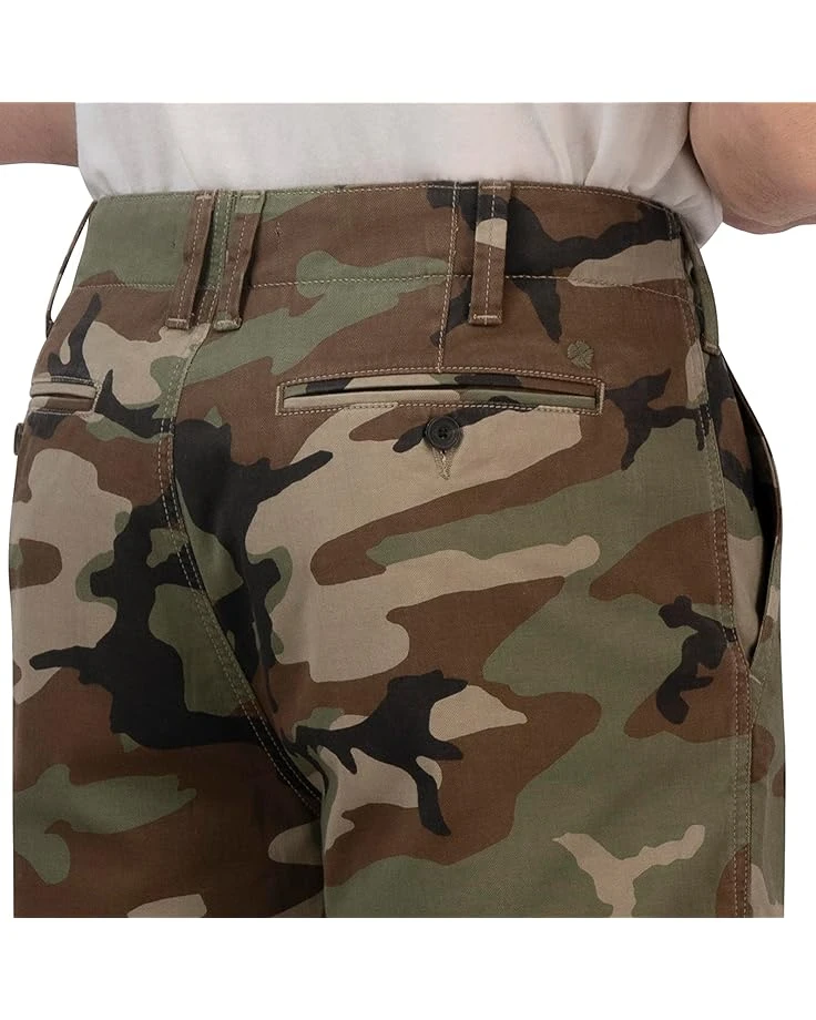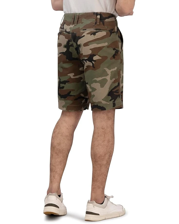 - Get ready for the warm weather activities by wearing the Lucky Brand® 9″ Stretch Twill Shorts. Featuring a smooth flat front and mid-rise silhouette, these stretch shorts offer superior comfort and style. The soft and lightweight stretch twill fabric of these shorts keeps you cool and comfortable all day. These printed shorts are finished with a zip-fly, buttoned closure, and belt loops.