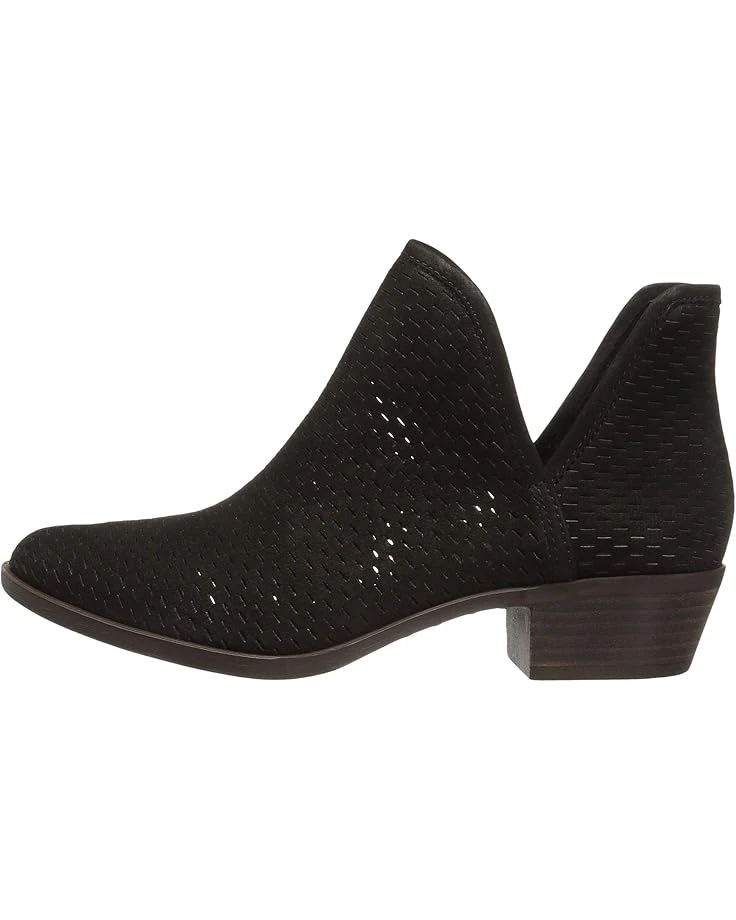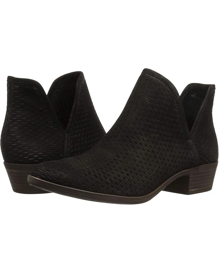 - The Lucky Brand® Baley bootie will complete your contemporary-chic look with an ankle height, V-cut accents at the sides, and a stacked block heel.