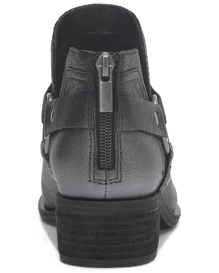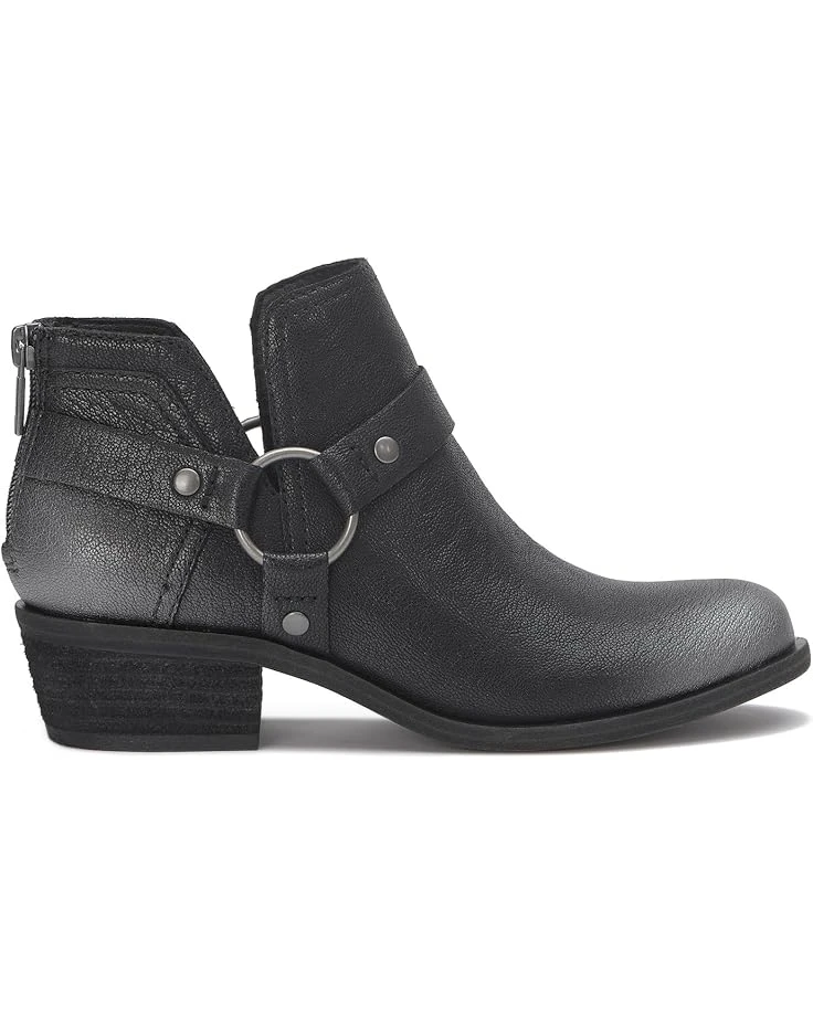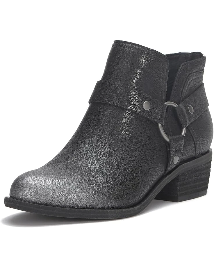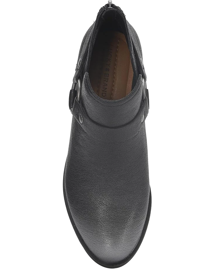 - Some western flare is added to the Lucky Brand® Boltin boots. Featuring the classic rounded toe silhouette and wearable block heels, these heeled boots also sport a sleek harness for some added styling. The leather upper, EVA insole, and polyester lining provide superior comfort and durability. These ankle boots are perfect to style up your outfits.