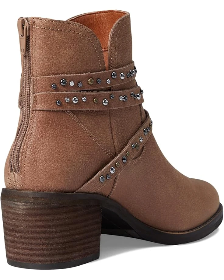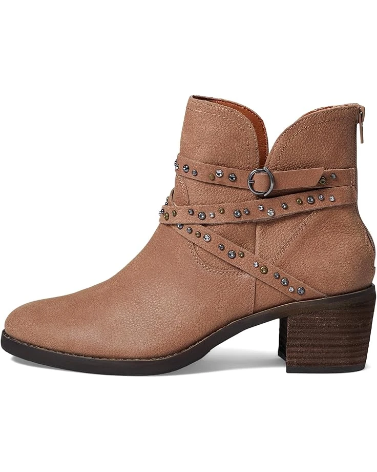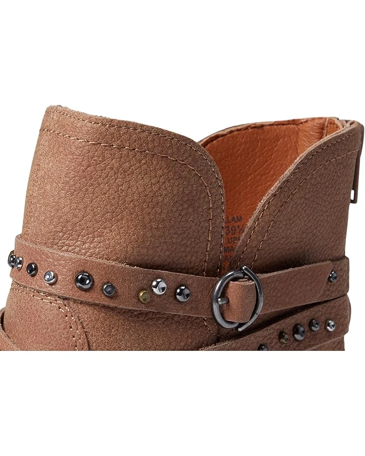 - Let your feet indulge in premium comfort and timeless style wearing the Lucky Brand® Callam Ankle Boots. This almond toe pair features leather upper construction with multiple straps along the ankle, affixed by a decorative buckle hardware, and zippered back closure.
