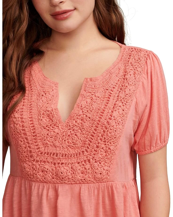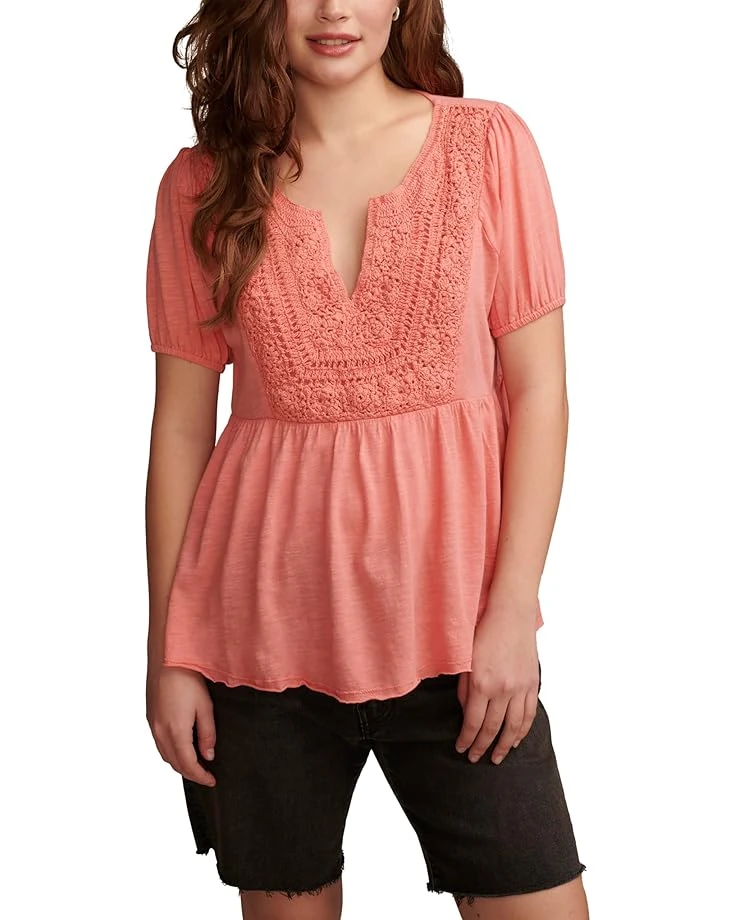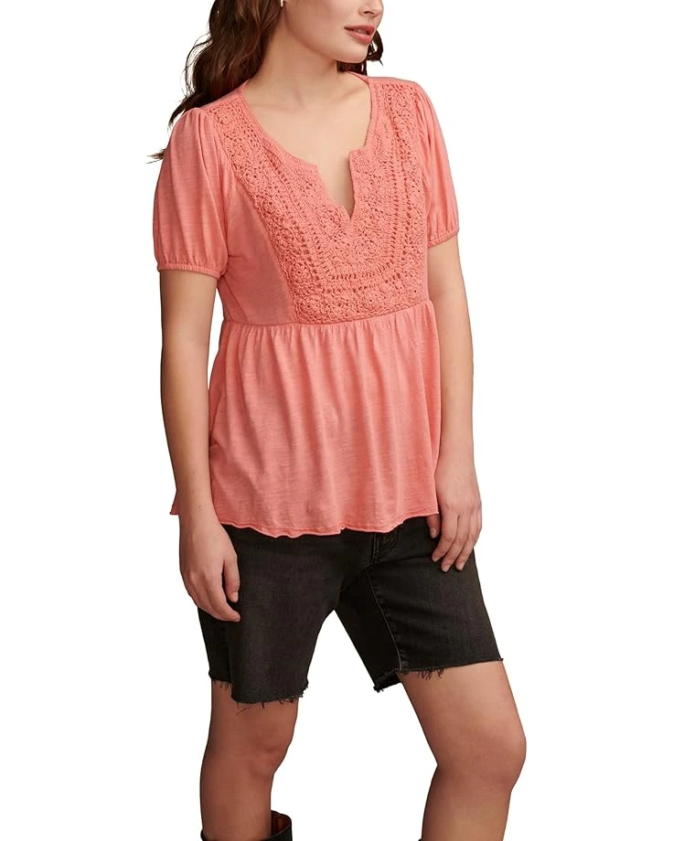 Lucky Brand Crochet Yoke Babydoll Top | Shirts & Tops