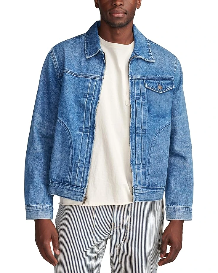- Introducing Lucky Brand® Denim Jacket, a fusion of style and versatility. Crafted with a spread collar and long sleeves with buttoned cuffs, it exudes timeless charm. Featuring a zippered closure and one chest pocket, it offers functionality with flair.
