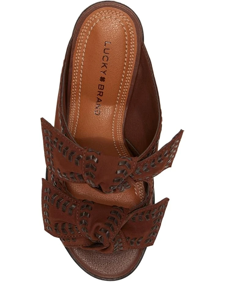 - Feminine, dress and casual come together perfectly in the Lucky Brand® Dynah slip-on sandals. Crafted with a double knot bow detail on the leather upper, these sandals exude effortless elegance. The subtle stitching and clean stack block heel add a hint of artisanal style, perfect for transitioning seamlessly from day to night.