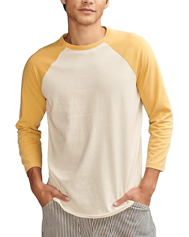 - The Lucky Brand® Eco Jersey 3/4 Sleeve Raglan is spun from a soft and lightweight cotton fabric. The color-block and regular fit tee features three-quarter sleeves, shirttail hemline, and pull-on construction.