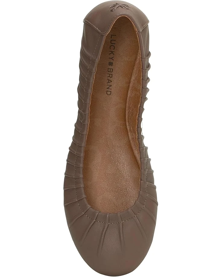 - Lucky Brand® Erla is a timeless pair of ballet flats coming in an easy slip-on style and updated with a striking pleated detailing all over the vamp. These shoes are crafted with a durable leather upper, a soft faux leather lining, and a cushioned insole, offering a luxurious style and all-day comfort.