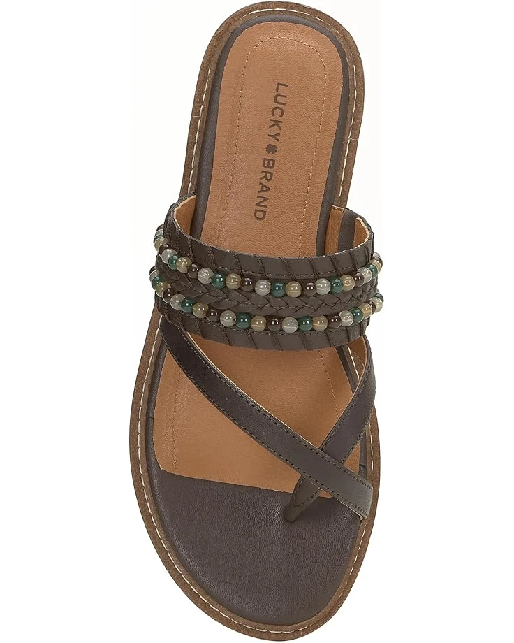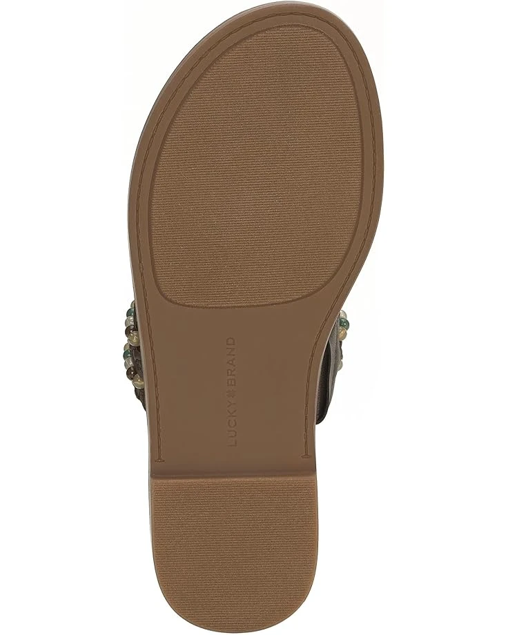 - Step out in style and step up your comfort game by wearing the Lucky Brand® Kaykey sandals! Meticulously designed with a faux leather upper featuring eye-catching bead details, these sandals are a fashionable statement that will complement any ensemble. The polyester lining and insole ensure a cushioned and cozy fit, allowing you to stride through your day with ease.
