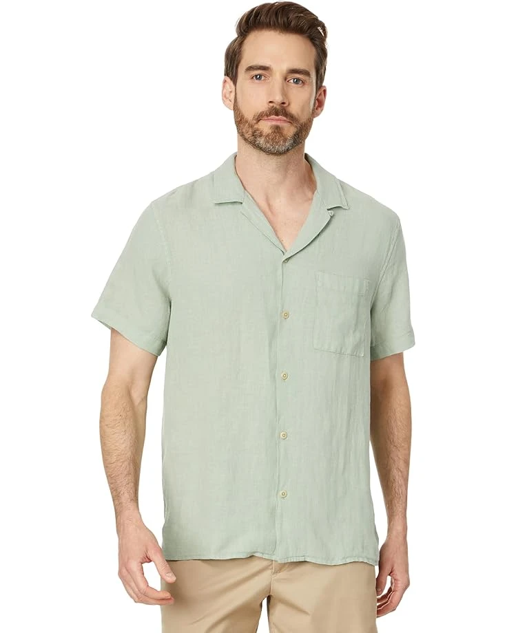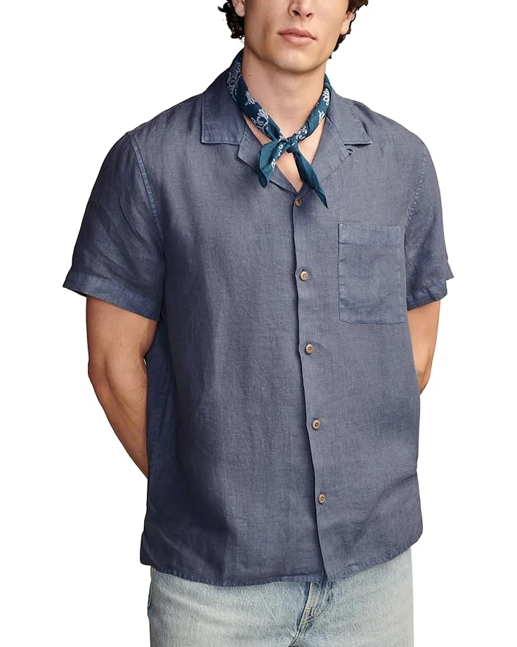 - Bring a touch of elegance and spark to your look donning the Lucky Brand® Linen Camp Collar Short Sleeve Shirt. The shirt features buttoned front closure, patch pocket on the left chest, and straight hemline.
