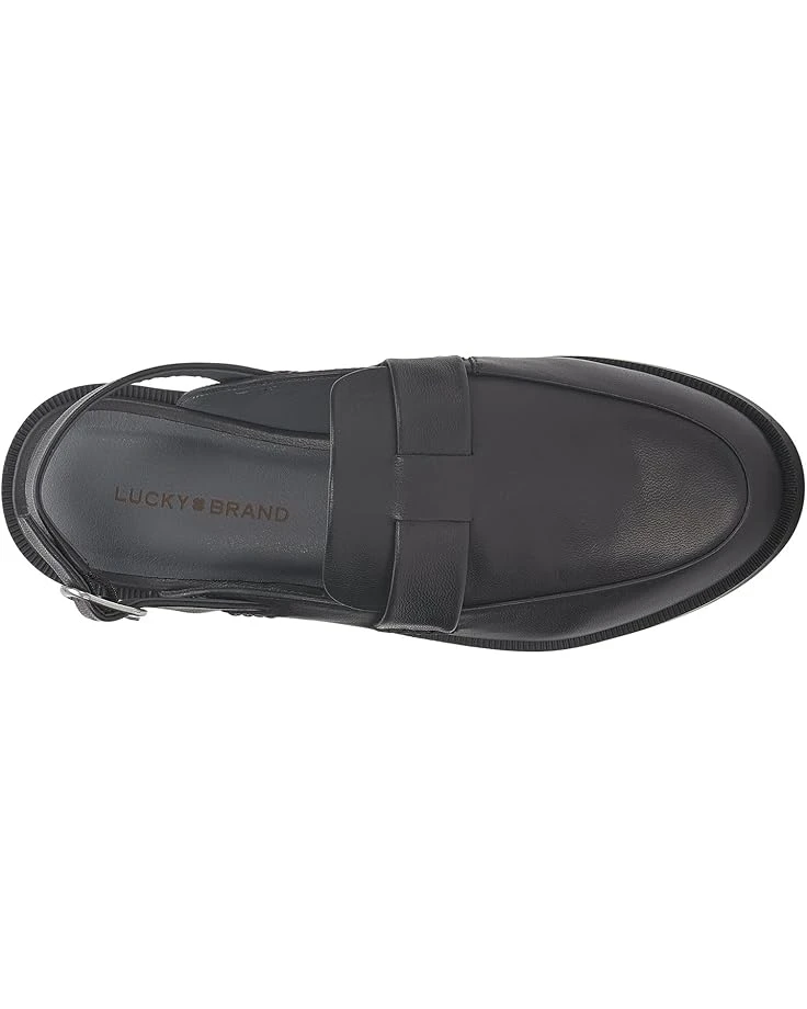 - Exude sophistication with every stride while enjoying that breezy feel and lightweight comfort wearing the Lucky Brand® Louisaa Slingback Mules. Showcasing a standout style with a closed round toe and a slingback strap with buckle closure, the shoes are made with a leather upper, a faux leather lining, and a padded insole.