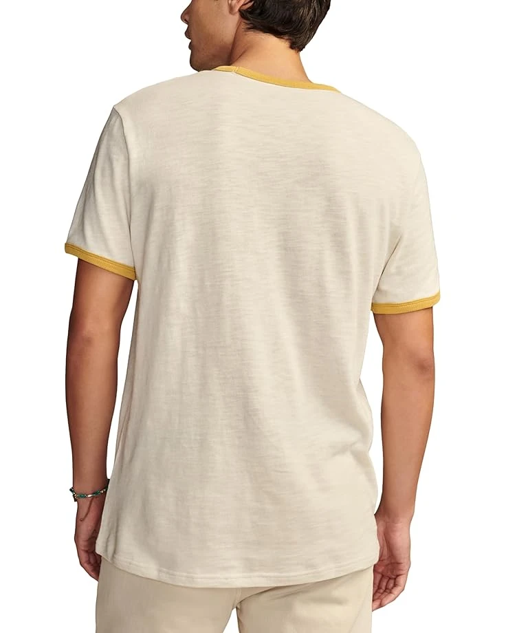- Give your button-down a break and reach for the Lucky Brand® Lucky Number One Tee. Made of premium slub cotton, this pull-on style t-shirt has a comfortable crewneck, short sleeves, straigh hem, and a rad graphic with contrast trim details at the neck & cuffs. From lounging at home to hanging with friends, this tee is perfect for all your laid back looks.