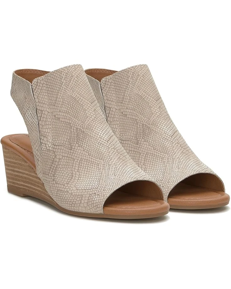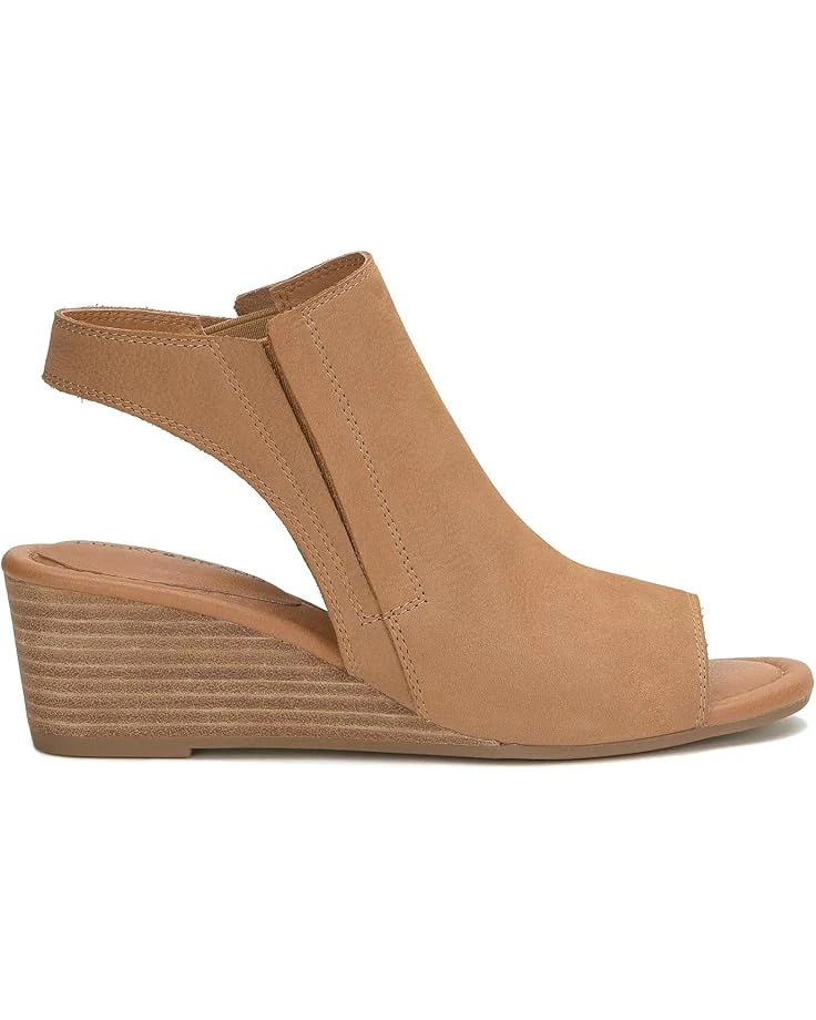 - Embrace the comfort bliss and classic elegance wearing the Lucky Brand® Movisa Sandals. Featuring a slingback strap closure, this slip-on footwear has nubuck leather upper construction with striped wedge heels and almond toe silhouette.