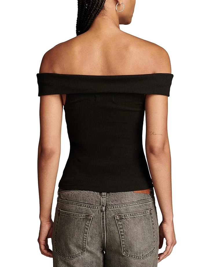 - Switch up your summer style with the Lucky Brand® Off-the-Shoulder Top. A classic in anyone’s closet, this striped off the shoulder top is a no-brainer, go-to choice for all your warm weather ‘fits. It features a fitted construction along with a straight hemline for a sophisticated statment look. From festivals to brunches, this top is a must-have style for your sunny day plans.