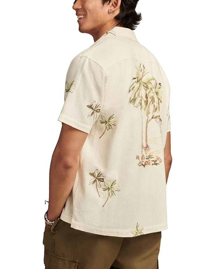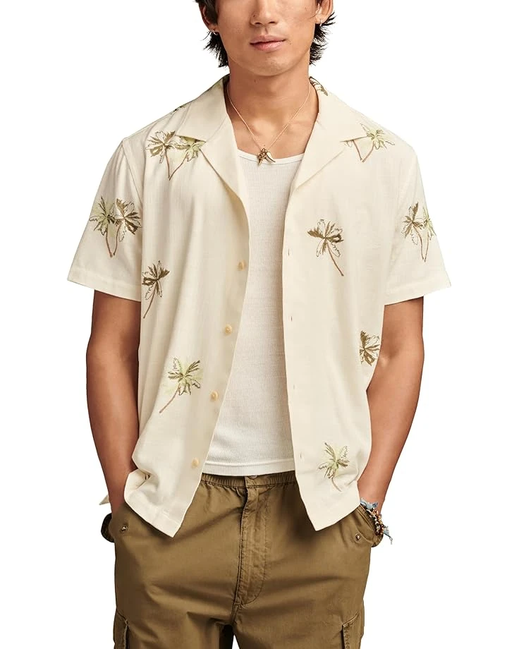 - Freshen up your warm weather wardrobe with the Lucky Brand® Palm Tree Embroidered Short Sleeve Camp Collar Shirt. Cut from soft cotton fabric, this button-up shirt features a camp collar, short sleeves, a full button-front closure, and embroidered palm tree detail throughout. The straight hem completes the look. From backyard barbeques to boat rides and more, this short sleeve shirt is a must-have style for all your plans ahead.;