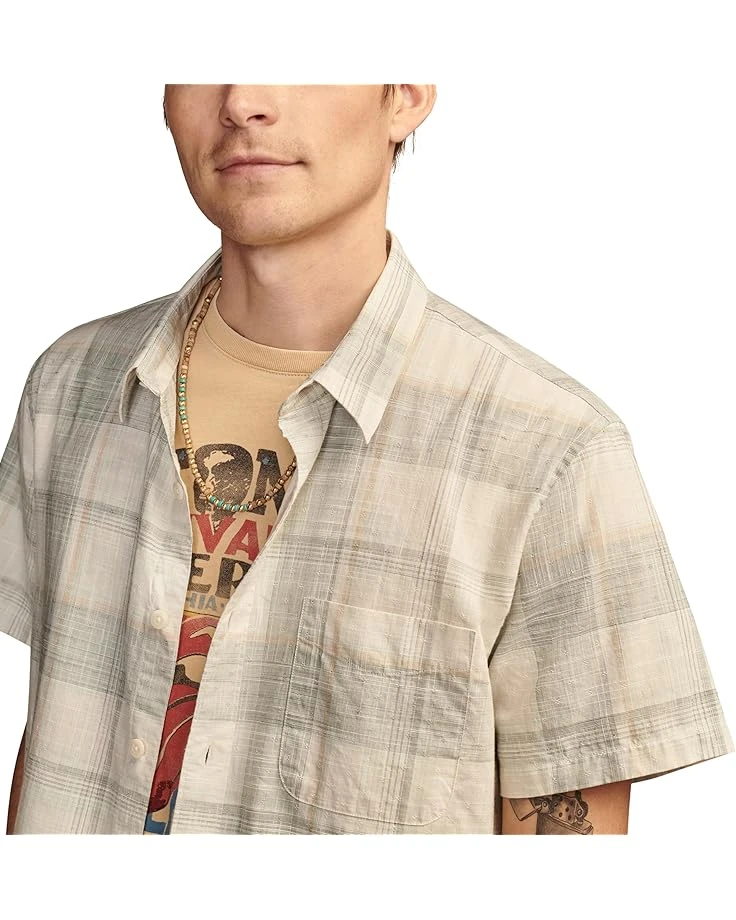 - Keep your style simple with the Lucky Brand® Plaid San Gabriel Short Sleeve 1 Pocket Shirt. Cut from cotton poplin fabric, this short-sleeved shirt shows off an allover classic plaid print, spread collar, straight hem, and a chest pocket. The buttoned front closure of the shirt ensures easy wear. Buttoned up or worn loose, this cotton shirt is a go-to choice for all your warm-weather plans.