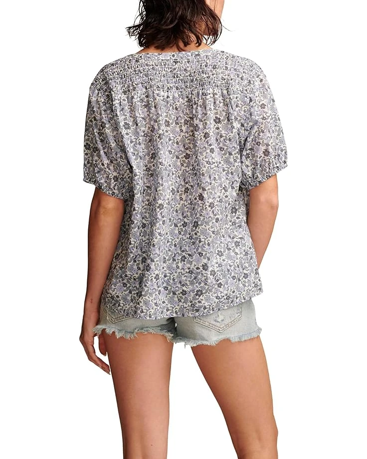 Lucky Brand Printed Smocked Shoulder Blouse | Shirts & Tops