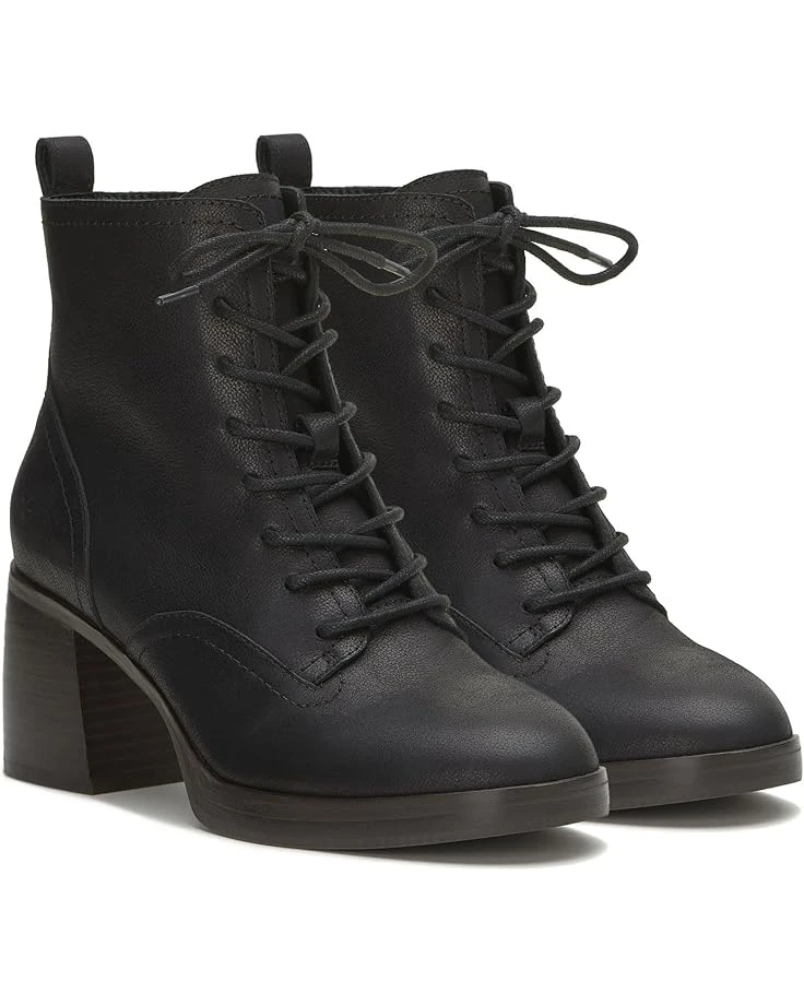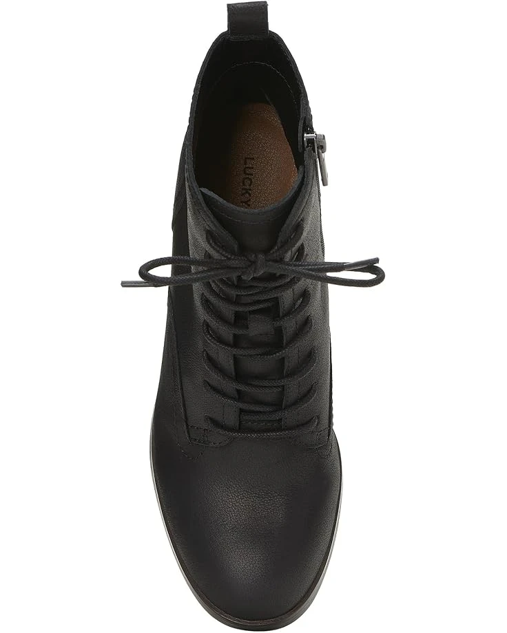 - Reach new heights every day by wearing Lucky Brand® Qiama boots. The boots feature an almond toe, lace-up closure, and heel pull-tabs. The side zipper ensures a better fit. Block heels improve the firmness of feet.