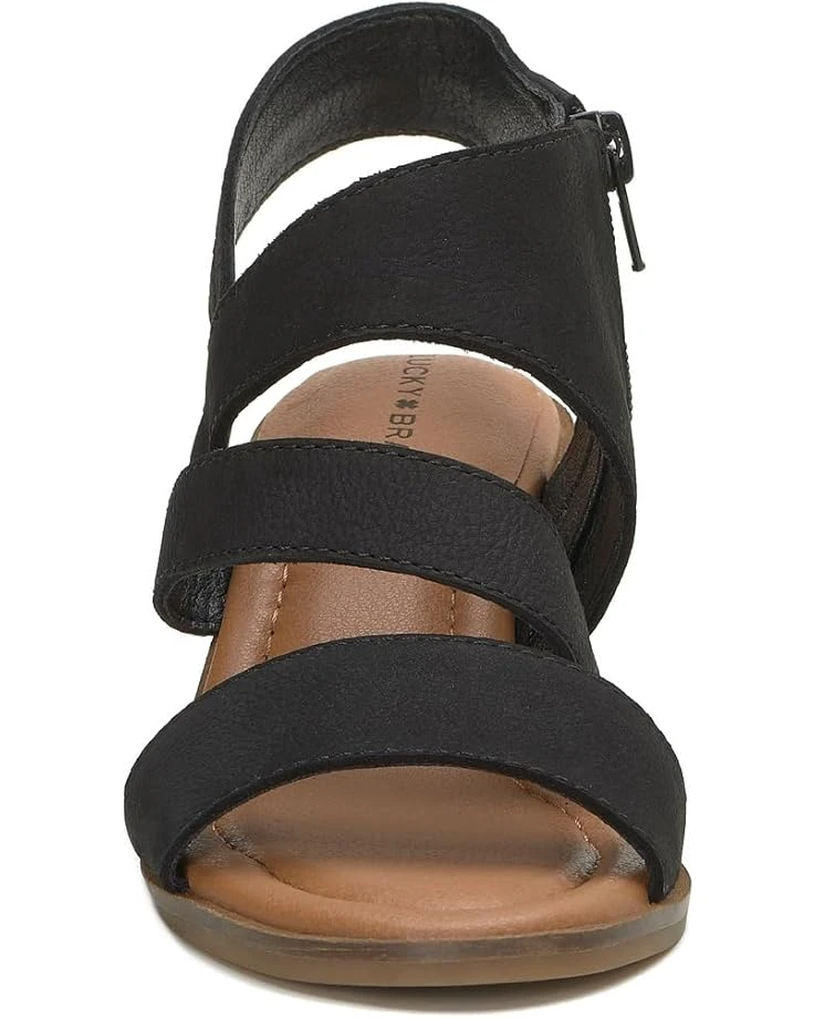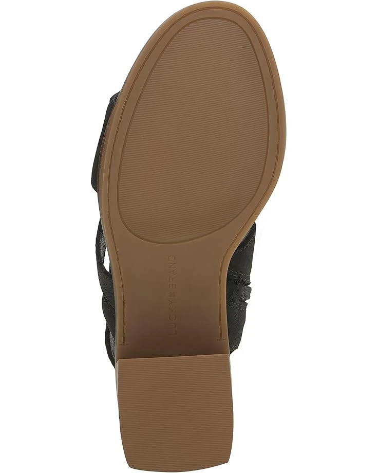 - Venture out for a cool morning vibe by wearing Lucky Brand® Rhodette sandals. The sandals feature a leather upper, faux leather lining, and polyester insole. It has adjustable strappy design with zip closure.