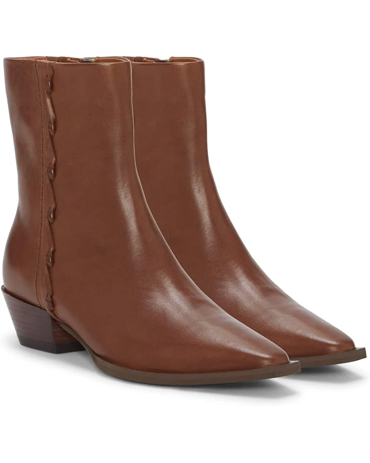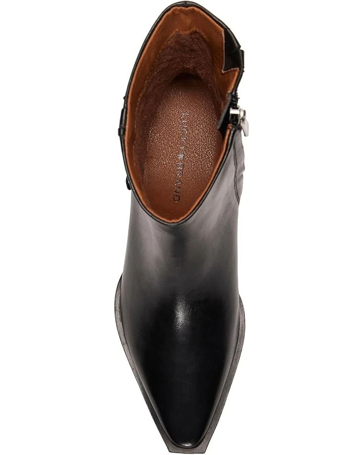 - Experience a feminine and tailored turn in booties with the Lucky Brand® Shakell boots. These dress booties are detailed to perfection with a smooth leather upper, snip toe silhouette, inside zippered closure, outside detailing, and shaft height just under the calf. The polyester insole and lining offer all-day comfort. Super chic and comfy, these heeled boots make a great addition to your footwear collection.