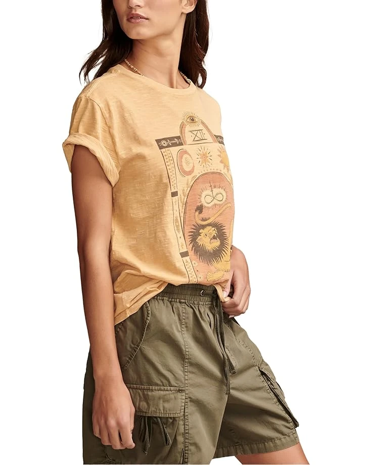 - Stay stylish by donning your favorite jeans or skirts with Lucky Brand® Strength Lion Boyfriend Tee crafted with a classy crew neckline, short sleeves, and a cactus print graphic at the chest.